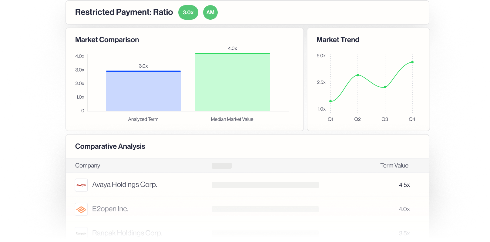 Access the largest knowledge graph of AI-indexed terms in the market. Our dataset spans public and private transactions and growing everyday, giving you unmatched visibility into historical market trends and term prevalence across all deal types.