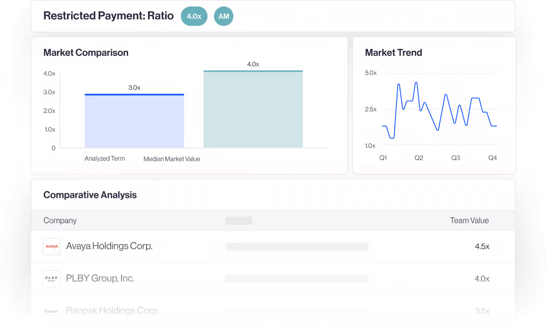 Access the largest knowledge graph of AI-indexed terms in the market. Our dataset spans public and private transactions and growing everyday, giving you unmatched visibility into historical market trends and term prevalence across all deal types.